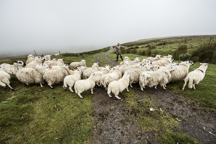 A shepherd in mid-Wales: a timeless scene on a high, misty plateau, along the B4518, south of Snowdonia.