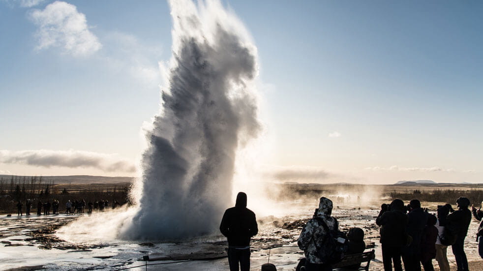 Message received, we stand well back from the simmering cauldron, inhaling whiffs of eggy sulphur as we wait for the imminent eruption. After several minutes, the smouldering pool sucks in slightly, as if taking a breath, then shoots a fountain of superheated steam 20 metres into the sky, like a whale sneezing through its blowhole. People ooh and ahh and raise their cameras, then march back through the swirling mist to their cars and bus tours, on to the next natural wonder.